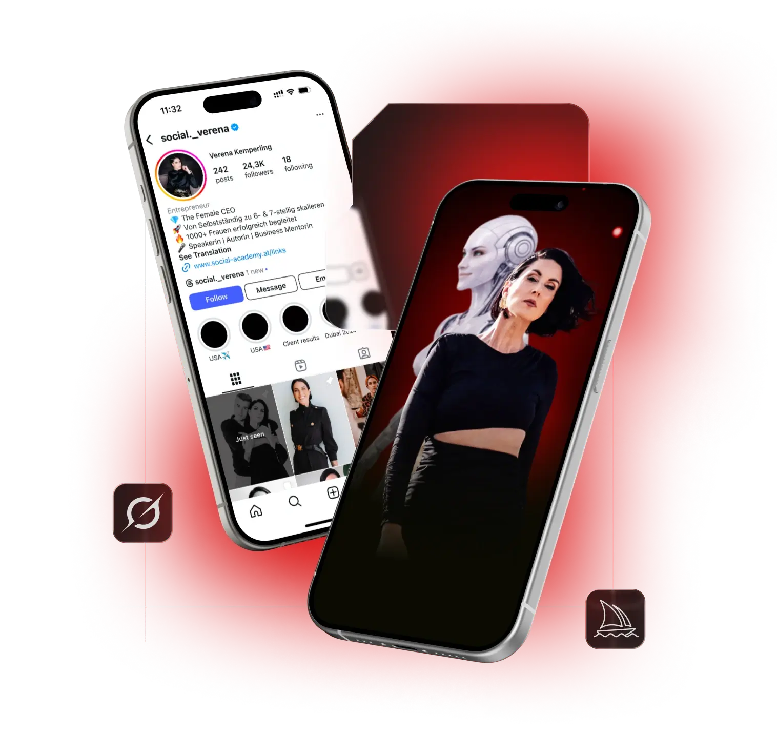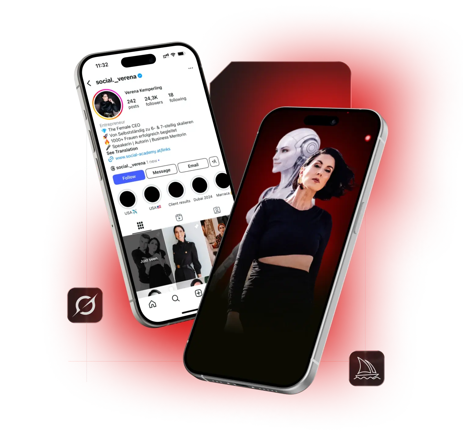 Ich habe Instagram in meine persönliche Lead- und Umsatzmaschine verwandelt, kombiniert mit strategisch platzierten Ads, die mein Business nachhaltig skalieren. Bis heute gewinne ich jeden Monat High-Ticket-Kundinnen rein organisch über Instagram, die mir zwischen 8.000 und 26.000 € für meine Mentorings bezahlen.